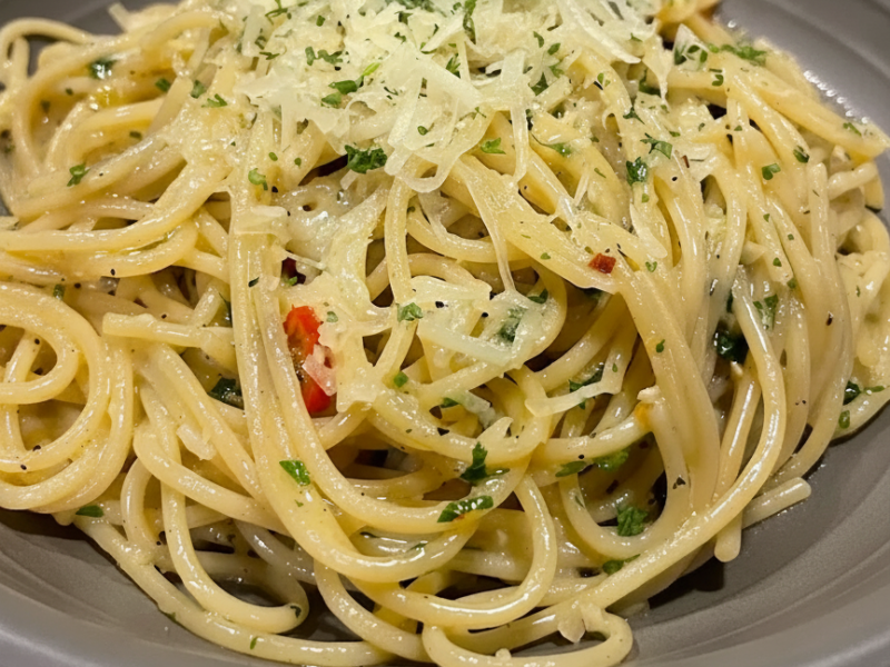 The first bite itself was a shock. It wasn’t dry at all. The pasta was perfectly coated in olive oil, the garlic was aromatic instead of overpowering, and there was this subtle heat from the chili flakes that slowly crept in which was not even there the last time I tried. It wasn’t loud or aggressive like the flavors I was used to, it was simple, balanced, and surprisingly addictive.